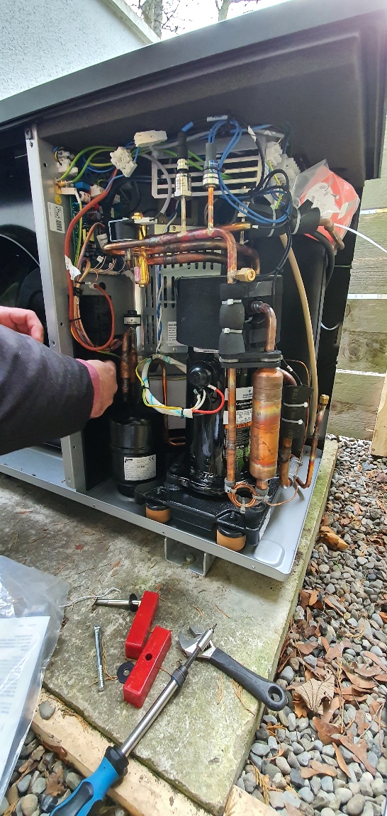 Dewar Gas Services were called by the client to inspect a leaking heat pump. Upon inspection, we found that it was poorly installed by the